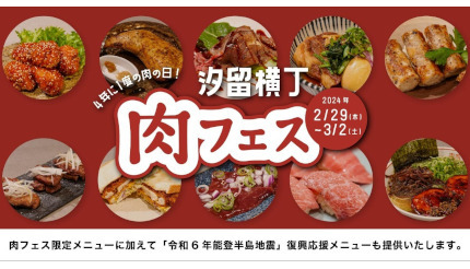 汐留横丁肉フェスは、2月29日の「4年に一度の29日(肉の日)」を記念したイベントで、汐留横丁に出店する全15店舗のうち11店舗が「肉」をテーマにした限定メニューを提供する。