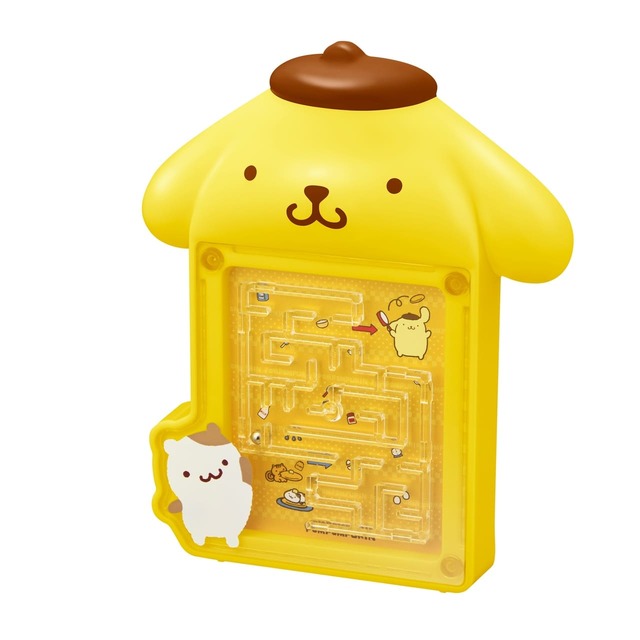 ポムポムプリンとマフィンをモチーフにした迷路ゲームです。おもちゃを傾けながら、うまくボールをスタートからゴールまで運ぶ遊びが楽しめます。