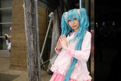 痛車コーナーでは、桜ミクのモニュメント入り痛車とともに、桜ミクコスプレイヤーさんがお出迎え。コスプレイヤーさんは桜ミクをペイントするパフォーマンスをしていました。