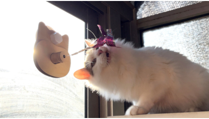 「まどじゃらし」は、ソーラー発電で稼働する猫のおもちゃで、窓辺が好きな猫の「ぼっち」な時間を豊かにしたい、との想いから生まれた。