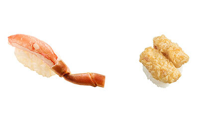 「生本ずわい蟹」と「かに身の天ぷらにぎり」