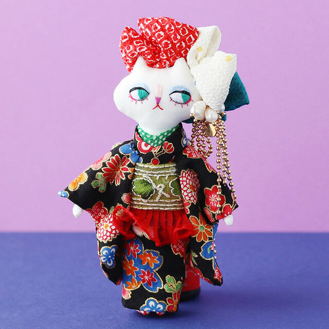 gazetの着物シリーズ、全長約13cmのバッグチャームです。着物×ねこがおしゃれかわいい!