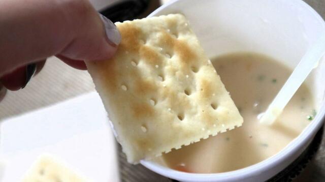 2枚付いているクラッカーのうち、1枚は浸して、もう1枚は砕いてトッピングで楽しみました。