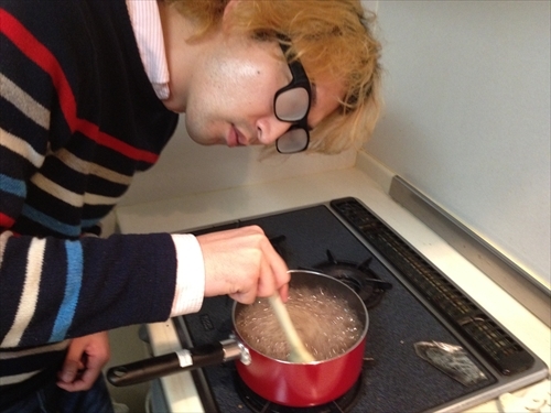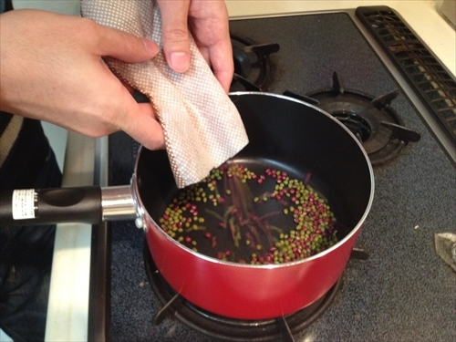 水分が飛んであずきが顔を出しそうになったら、その都度、差し水をしないといけないので、ずっとつきっきりで見守ります。あずきの状態からおしるこを作るのって結構大変な作業なんですね…。