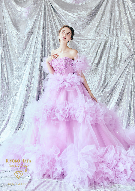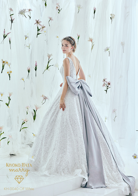 シンプルながら、「KIYOKOHATA×marry」らしいテクニックが詰め込まれた一着で、他にない美しいシルエットを魅せることができます。