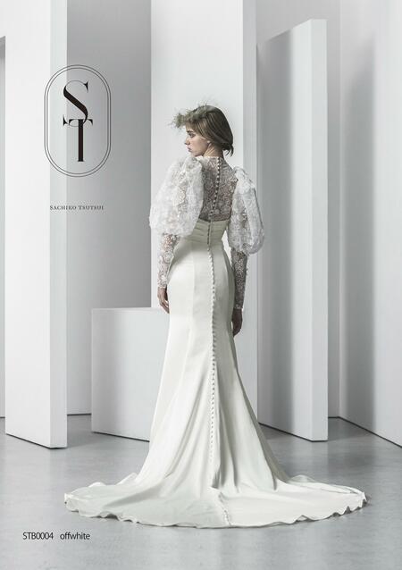 印象的なバブルスリーブで、レトロクラシックな雰囲気を漂わせつつ、シンプルなマーメイドと合わせることによって、シックなイメージに。
