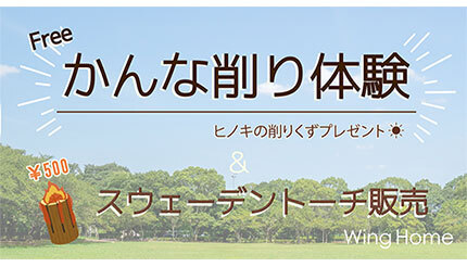 ウイングホームは、菊川運動公園(静岡県菊川市)にて3月2~3日の期間に開催される「静岡アウトサイドフェスティバル in 菊川」に参加し、「かんな削り体験」の無料ワークショップを実施する。