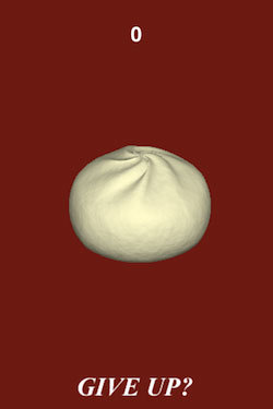 「i刺身」と同様、単純ゲーム。こちらは画面横から流れてくる肉まんの頭の部分をタップして、くるっと皮をひねってあげるのです。これも自分にいかに忍耐力がないかを試されます。SETTINGにあるSPEEDを一番速い「crazy」にしても、それほど速く流れてこないので、やはり自分の忍耐力が試されてしまいます。ただ、これをやっていると、やたらと肉まんが食べたくなってくる、そういった食欲増進効果はあります。