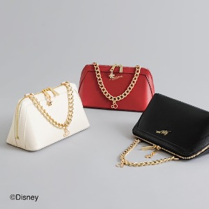 ショルダーバッグはミッキーとミニーのプリントがワンポイントになっており、ベルト穴もミッキー型に。