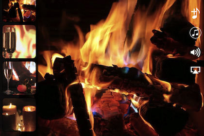 でも、スゴいことが1点。iPhoneアプリでは、AppleTVを使うと、テレビ画面にこの暖炉の映像が映せるというのです。(テレビの大きさによりますが)実物大のバーチャル暖炉になるってワケ。スケールのでかいB級アプリです。