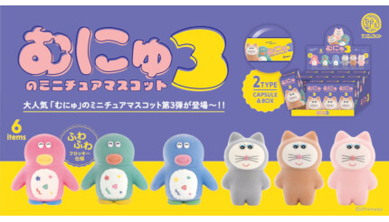 ケンエレファントは3月下旬から、ぬいぐるみ作家むにゅ氏が生み出したキャラクターをミニチュアトイ化した「むにゅのミニチュアマスコット 第3弾」を、カプセルトイとブラインドBOXの2形態で販売する。価格は、カプセルトイが400円、ブラインドBOXが440円。