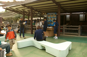 公園の真ん中、屋根のかかった「ちびっこ動物園」