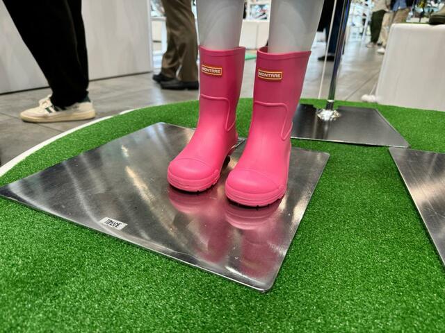 ホットピンクなどカラフルなカラーリングがかわいい子ども用長靴がありました。