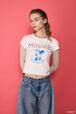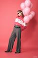 どこか時代を感じさせる赤い衣装でおめかししたミニーがお花をプレゼントしてくれるプリントが登場。