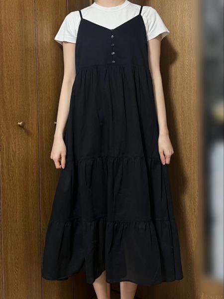 【ユニクロ クリンクルコットンキャミソールワンピース】ふんわり広がるAラインシルエットがきれい!