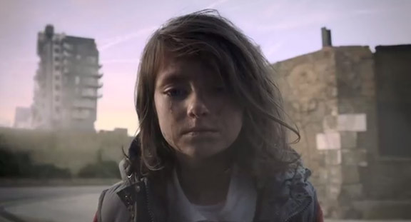 街には壊された家々が広がり、投下された爆弾の煙が舞い上がる。両親と街中を逃げ回るも、どこに行ってもそこは戦場なのである。そして、耳に残る銃声音はトラウマ的に止むことはない。その緊迫した戦場下で、女の子の小さな体は何を見つめ、どうその状況を受け止めているのだろうか。