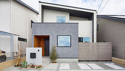 勝美住宅の普遍的なデザインにone specialのコーディネートが融合し、モノトーンな外壁で洗練された外観とグレージュの柔らかなカラーでまとめられたインテリアが印象的な内観となっているなど、こだわりが詰まったデザインで魅了するモデルハウスとなっている。