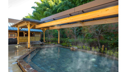 なお、今秋には敷地内で2000m掘削して汲み上げた温泉の開湯を予定しており、泉質はナトリウム-炭酸水素塩・塩化物温泉で弱アルカリ性の良質な温泉を地域最大級の露天風呂浴槽に源泉かけ流しにて供給する。