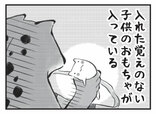 このあるある漫画を描いてから数年経っており、子どもはそれなりに成長しているのですが…ティッシュは変わらずパンパンだし、謎のゴミはあるし、子どもから「ちょっと持ってて」と渡されたおもちゃが居座っているし、レジ袋は有料になったからエコバッグの予備として必須だし…。