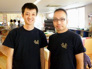 特製どろっぱTシャツを着こなす、メンバーの土井さん(左)と坂井さん(右)