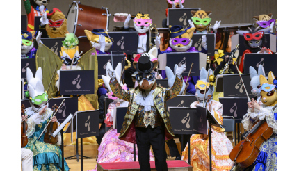 会場には、動物たちは花かんむりをつけたり、マントを着たりといったカーニバル衣装で登場し、弦うさぎの4姉妹は華やかなドレスで、クラリキャットの4名も色違いのロングドレスで登場する。また、全員がヴェネツィアのカーニバルをイメージしている中で、リオのカーニバルを彷彿とするサンバ衣装を着た動物も……。本編中には、撮影タイムも設けられる。