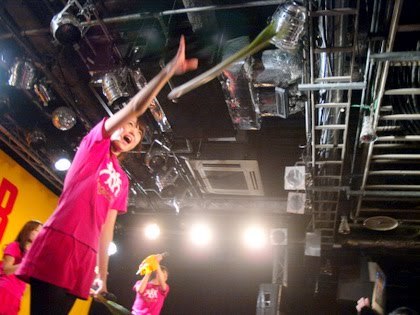 アンコールではNegicco Tシャツにお着替え。あ、こんなところに長ネギが!会場のみなさん受け取って~!