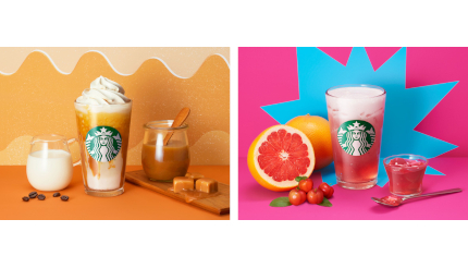 スターバックス コーヒー ジャパン(スタバ)は3月13日~4月9日(予定)の期間、挑戦する背中を応援する二つのビバレッジ「キャラメリー ミルクコーヒー フラペチーノ」と「ピンク フルーツ チアアップ」を、全国の「スターバックス」店舗(一部を除く)で販売する。
