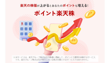 楽天グループは3月5日に、「楽天ポイント」の利用状況などを確認できる「楽天PointClub」において、楽天の株価に連動して設定した「楽天ポイント」が増減する、「ポイント楽天株」の本格提供を開始した。