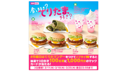 公式アカウント「@McDonaldsJapan」をフォローし、同アカウントから投稿された「#月曜日はてりたマンデー」のハッシュタグが付いた投稿(計3投稿)に「#月曜日はてりたマンデー」を付けてリプライすると、抽選で計100人に1000円分のマックカードが当たる。