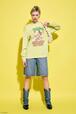 ニットカーディガンは、春らしいイエローで、透かし編みを使用。