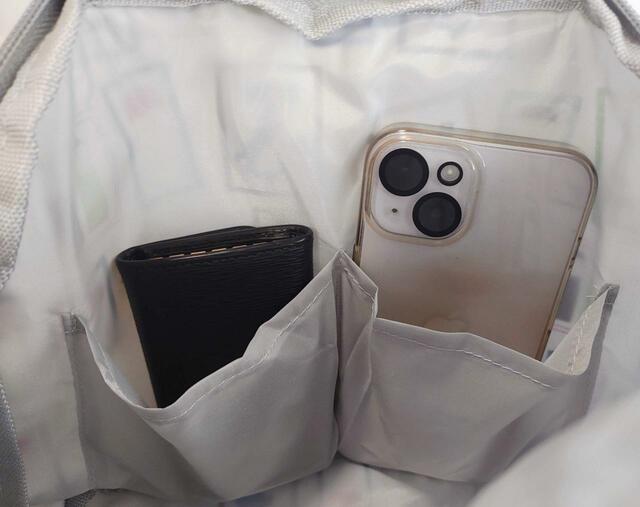 バッグの中には、ポケットが内側に2つ。携帯やキーケースなどが入るサイズ感のポケットです。