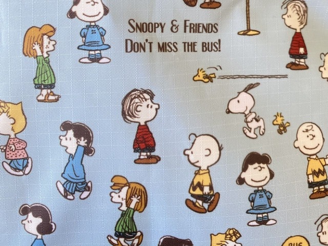 カラーはブルー、ピンク、ビーグルスカウトカーキの3色展開。内側はスヌーピーと仲間たちの総柄デザインで華やかなんですよ♪