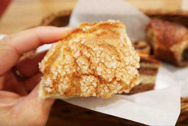 ガーリックとバジルの香り高い味わいが特徴的なこちらのフランスパン。今回食べたパンの中で、一番ハードな生地でした。おかげさまでしっかりお腹も満たされます。もちろん味もいうことなしのおいしさ!
