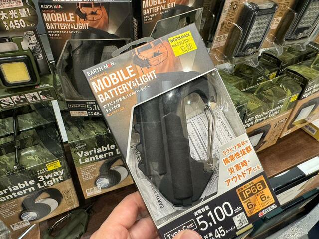 Mobile Battery&Light カラビナ付きモバイルバッテリー ライト付き/価格:3,980円(税込)