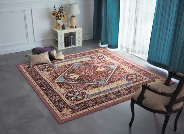 本物のお城にあるような風格と、高級感あふれる額縁デザインが素敵な、ジャカード織のラグ。