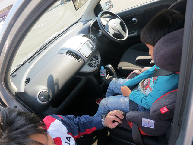 ということで、息子の頭の位置までヘッドレストの高さを調節してくれた新井さん。あわわわわ、全然ダメですね。