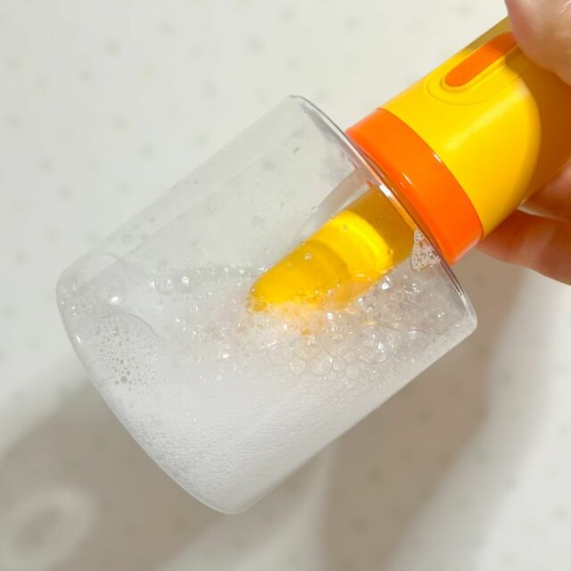 使い方はめっちゃ簡単。ボトル部分にシャンプーを入れて水を足し、シャカシャカ振るだけ!準備はこれで完了です。
