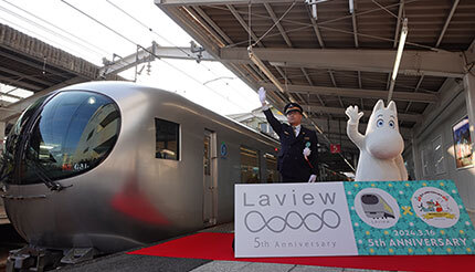 「特急ラビュー5周年×ムーミンバレーパーク5周年共同キャンペーン」を記念し、3月16日に「ラビュー出発式」を実施した。キャンペーンは2025年3月15日まで開催予定