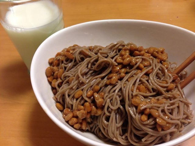 ということで、夜は自宅でそばを茹でて食べました。納豆を入れて大盛です。