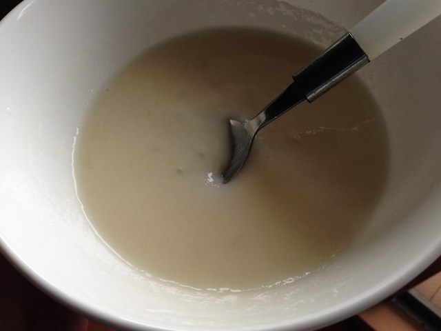 かき混ぜるととろみが出ます。フルー○ェみたいな感じです。これがおいしい。今度から朝ご飯としても取り入れてみます。
