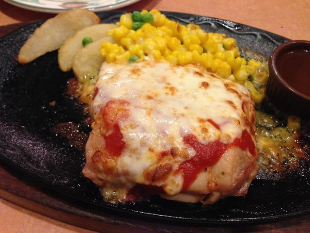 ファミレスでチキンステーキをいただきました。ちなみに、オフ会ゴールドとカロリミット、毎食飲もうかと思っていたのですが、がっつり食べるときだけにしています。