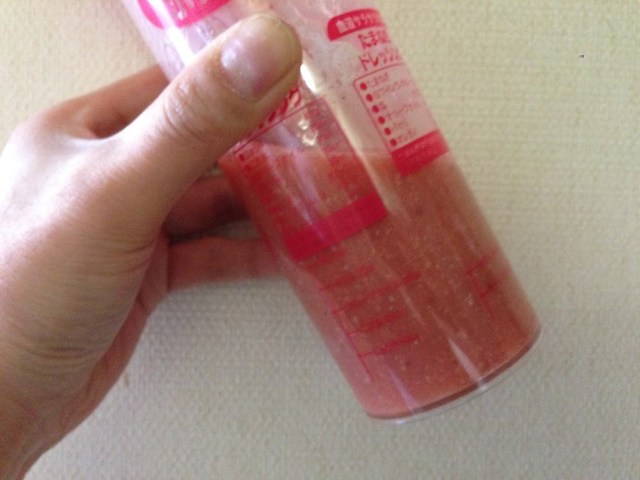 そこで、100円ショップでドレッシングボトルを買ってきました。これに粉と水を入れてシャカシャカすれば……。