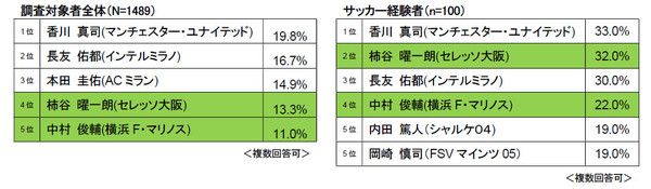 その柿谷に次いで、期待されているのが横浜FMの中村俊輔(5位/11.0%)だ。攻撃を組み立てるパスや状況を打開するドリブルだけでなく、試合状況を瞬時に読み取り、チーム全体を動かしていく様は、まさにピッチの指揮官だ。マークが厳しくても決定的な仕事をし、周囲を生かすひとつひとつのプレーは、35歳になった今なお衰えることなく、むしろ輝きを増している。