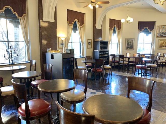 新聞記者が集まるパリのカフェをイメージした店内は、歴史的建造物のレトロな雰囲気を生かし、建物が建てられた1929年のデザインで作られた家具を集めています。
