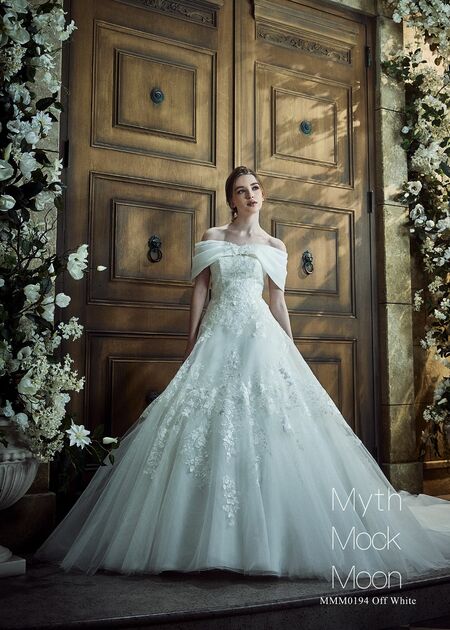 チュールに施された可憐な花のレースが、ドレス全体を美しく上品に彩ってくれます。