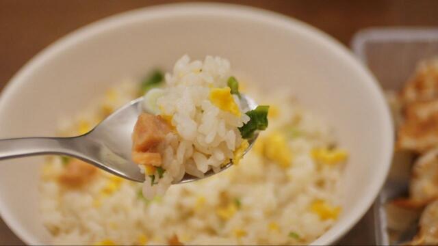 パラパラで美味しそうな炒飯は、温めている時から食欲そそるいい香り。