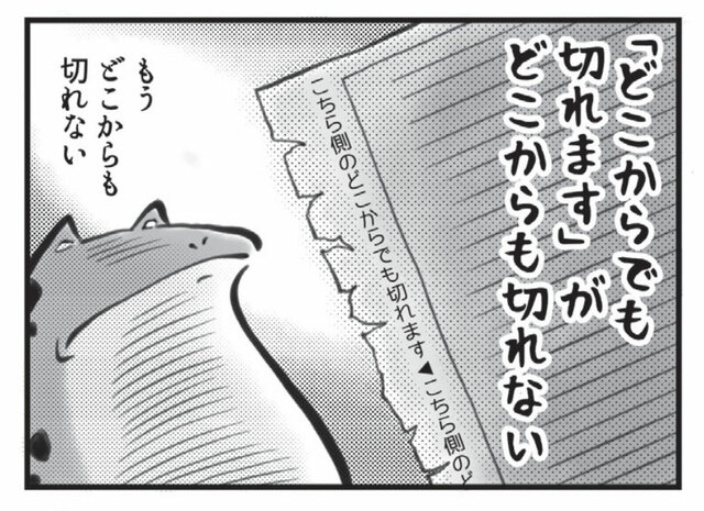 「手で切れます」はシャンプーなどの詰め替えでよく見かけますが、どうやら濡れた手でやると切れにくいようです。(対象物との間に摩擦力が必須らしい)