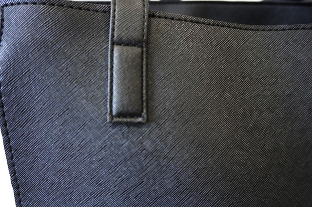 レザーの生地は、素材や生地の厚みによっては入れ口が大きく開きにくいデメリットがありますが、今回ご紹介するバッグは薄手のレザー調生地なので、ガバッと大きく開いて中身が見やすくなっています。