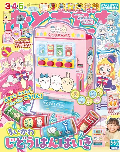 絵本や図鑑、子ども達に人気が高いテレビアニメ、特撮、玩具、キャラクターなどの情報が掲載されており、5・6・7月号の付録は、今大人気のちいかわの「じどうはんばいき」!