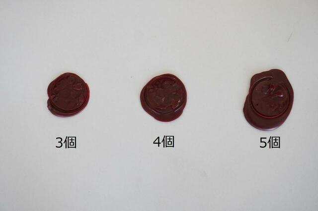 今回、シーリングワックスを3個で作ってみましたが、試しに4個と5個でも作ってみました。